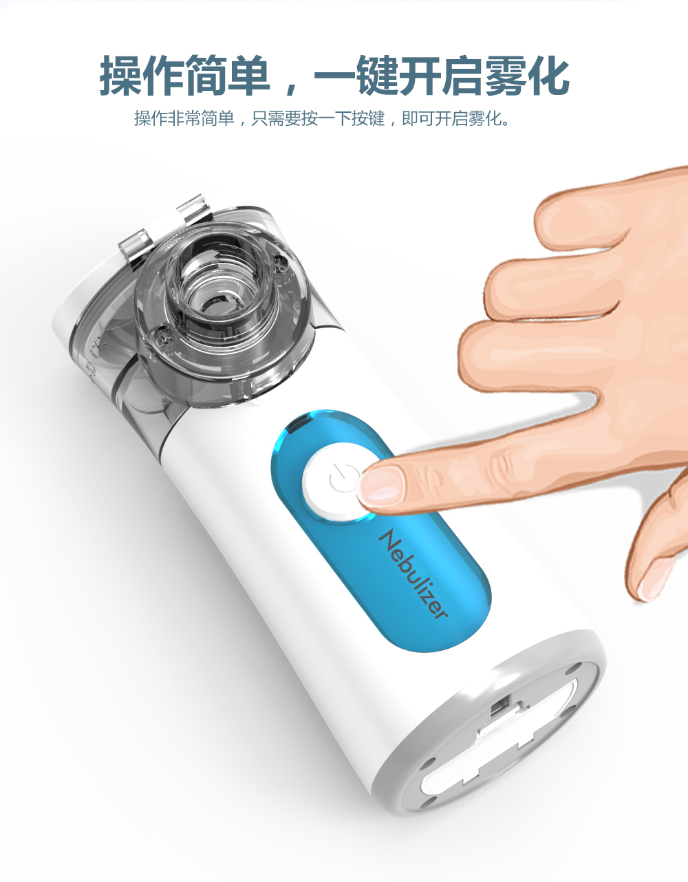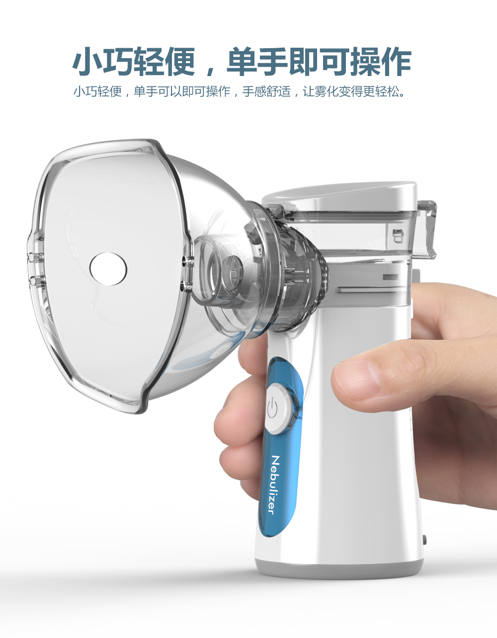 主要用于治疗各种上下呼吸系统疾病,如感冒、发热、咳嗽、哮喘、咽喉肿痛、咽炎、鼻炎、支气管炎、尘肺等气管、支气管、肺泡、胸腔内所发生的疾病。雾化吸入治疗是呼吸系统疾病治疗方法中一种重要和有效的治疗方法,采用雾化吸入器将药液雾化成微小颗粒,药物通过呼吸吸入的方式进入呼吸道和肺部沉积,从而达到无痛、迅速有效治疗的目的。雾化器适用于儿童、小孩、老人、特殊病患者、成人学生等。