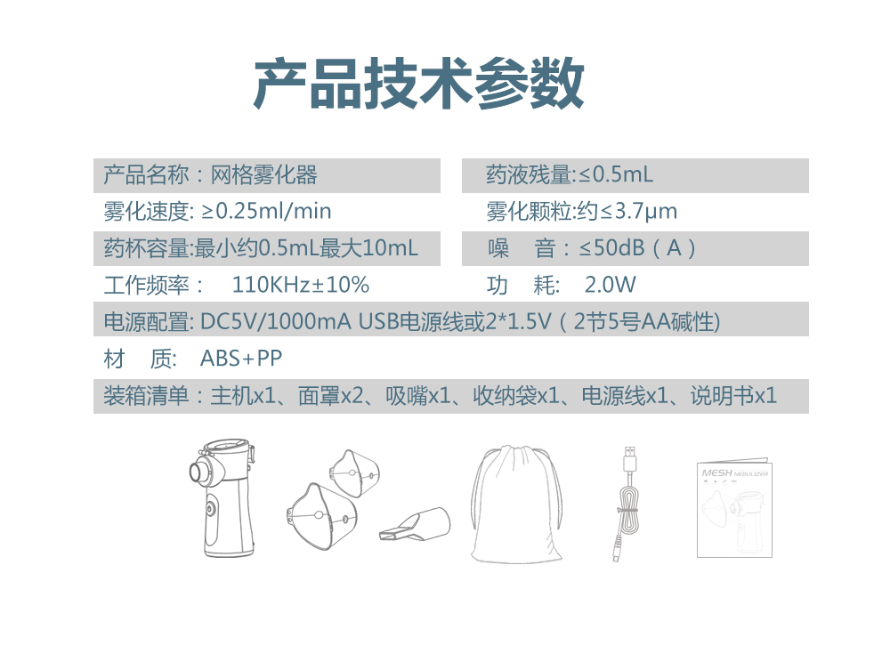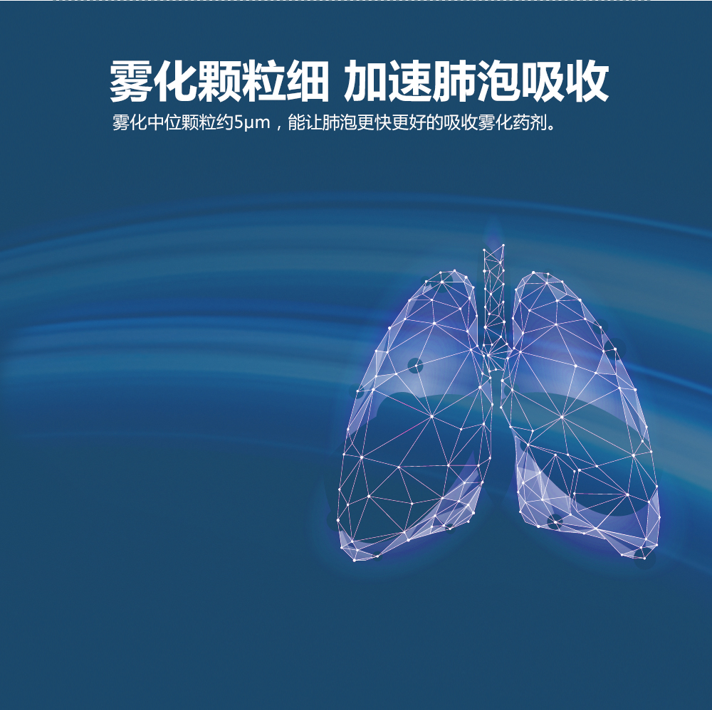 1)出雾大,雾化颗粒细腻,颗粒可达到3.7μm,药物吸收更充分;