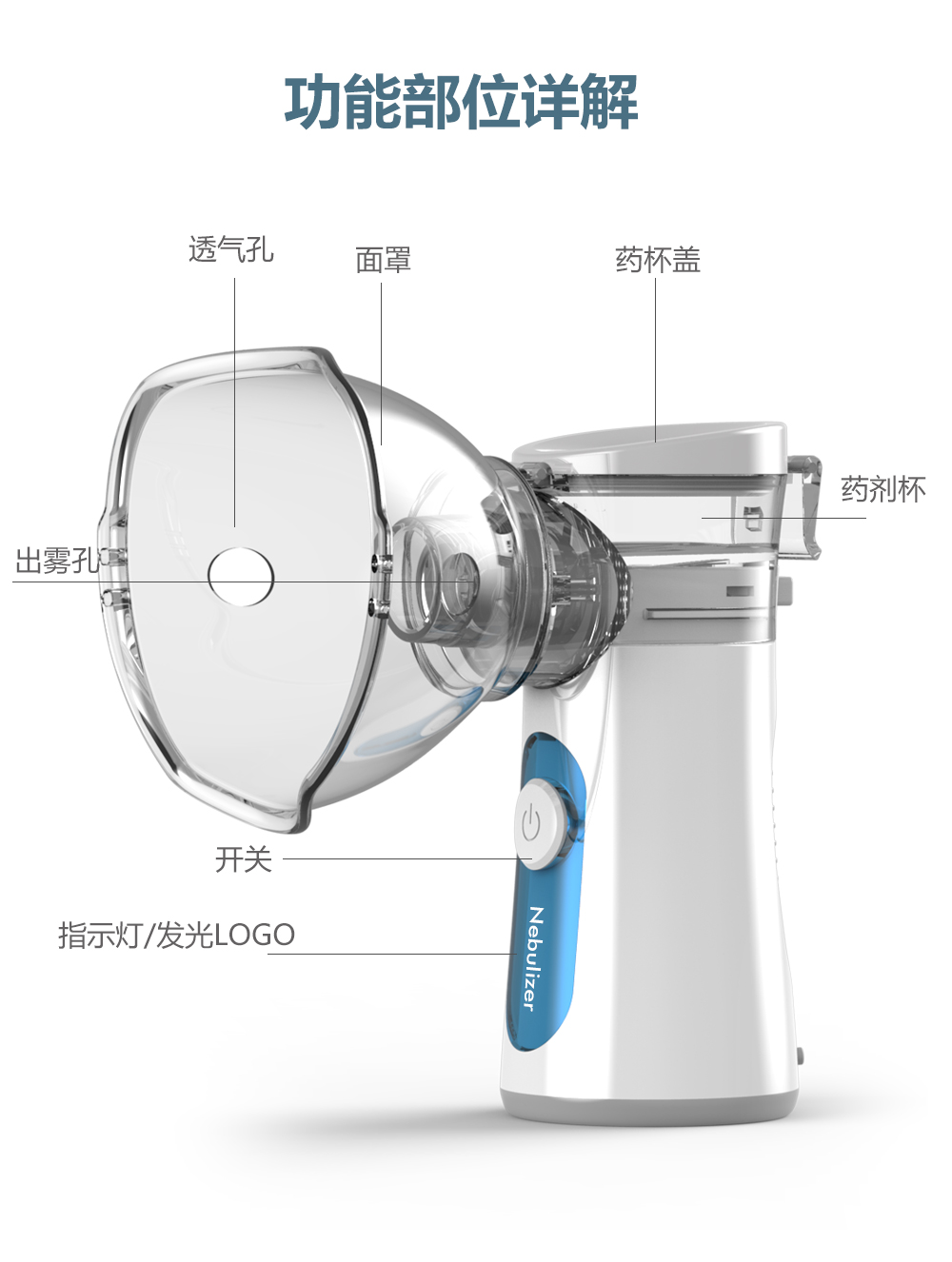 7)独立雾化组件,清洁简单,一键拆卸,便于清洗消毒,避免交叉感染;