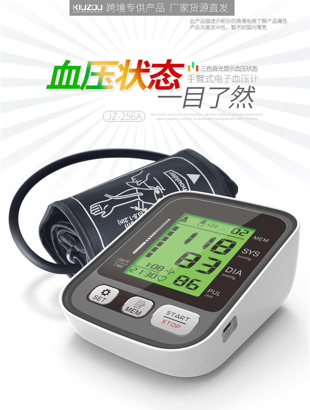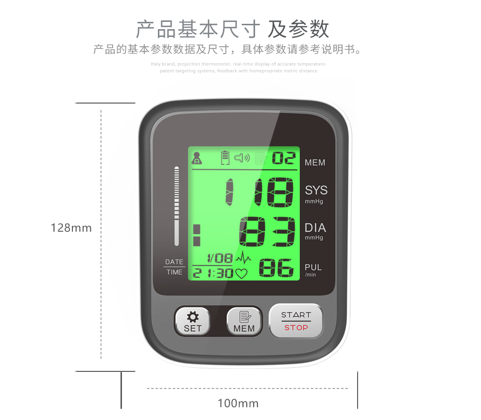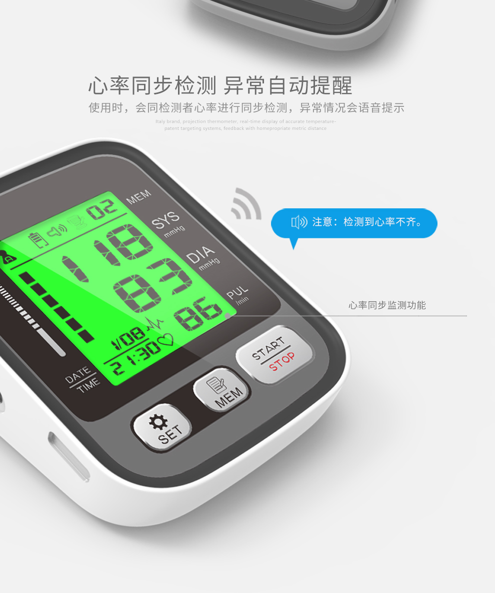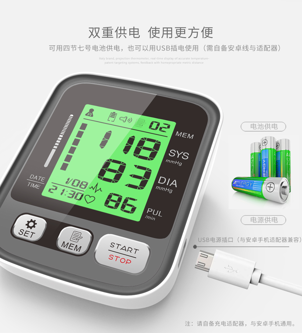 三色背光显示血压状态,血压健康状态一目了然!