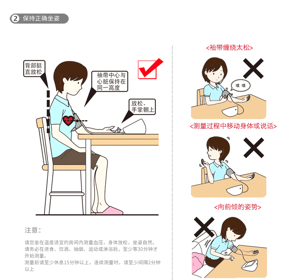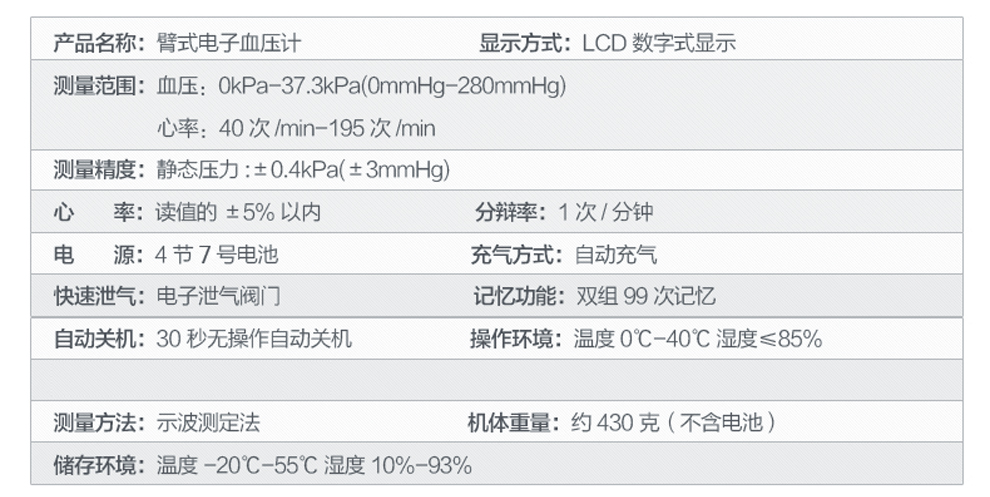 2.测量方式:手臂式电子血压计,降压式测量/示波测定法