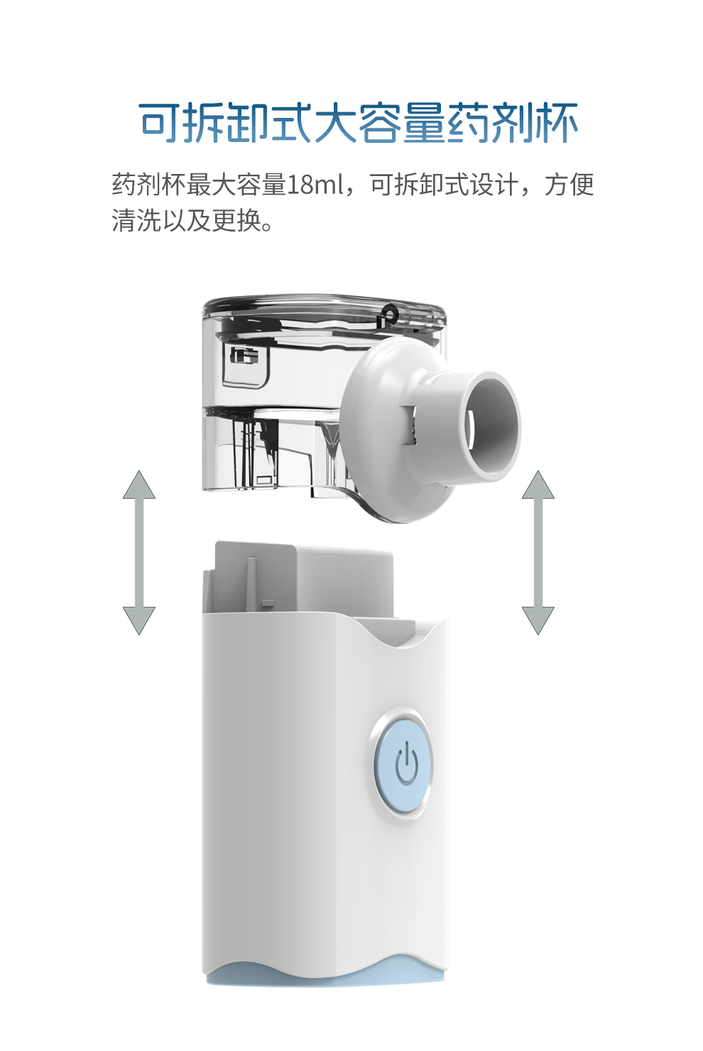 7)独立雾化组件,清洁简单,一键拆卸,便于清洗消毒,避免交叉感染;
